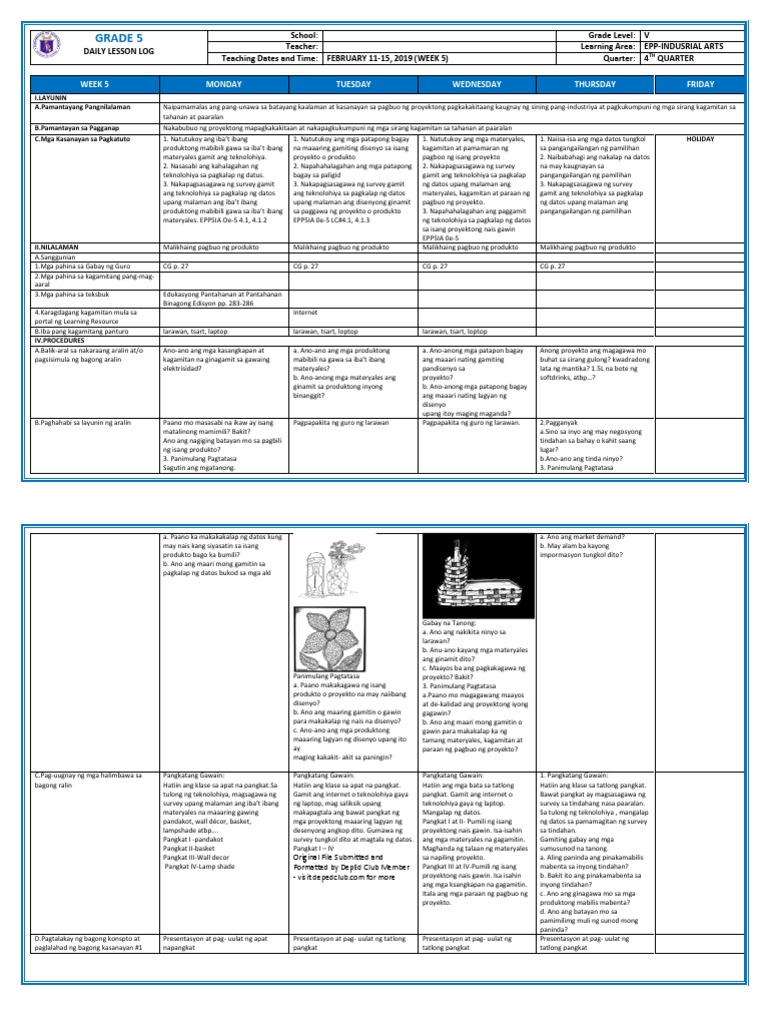 Dll G5 Q4 Week 5 All Subjects Mam Inkay Peralta