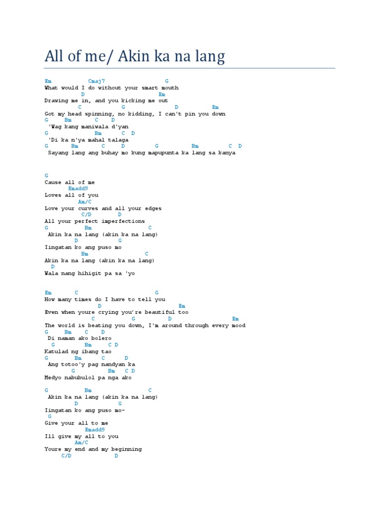 Guitar and Piano chords by Neatchords. Akin ka na lang akin ka na lang Wala nang hihigit pa sa yo. Liriko ng Akin Ka Na Lang English translation below Bakit hindi mo maramdaman Ikaw sa akin ay mahalaga Ako sayoy kaibigan lamang Pano nga bat di ko.