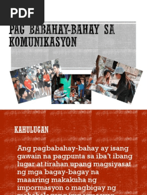 Filipino Pptx Pag Babahaybahay Sa Komunikasyon Kahulugan Ang Pagbabahay Bahay Ay Isang Gawain Na Pagpunta Sa Iba U2019t Ibang Lugar At Tirahan Upang Course Hero