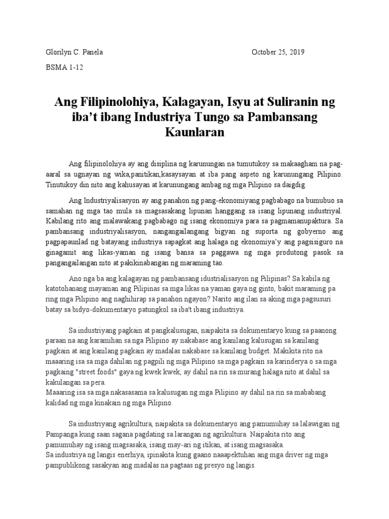 Ang Filipinolohiya Kalagayan Isyu At Suliranin Ng Iba T Ibang Industriya Tungo Sa Pambansang Kaunlaran