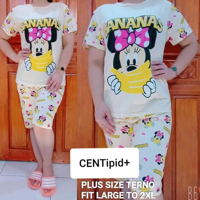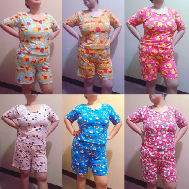 Plus Size Xl 4xl Super Comfty Pambahay Terno Coordinates Cartoons Tshirt Shorts Freesize Shopee Philippines