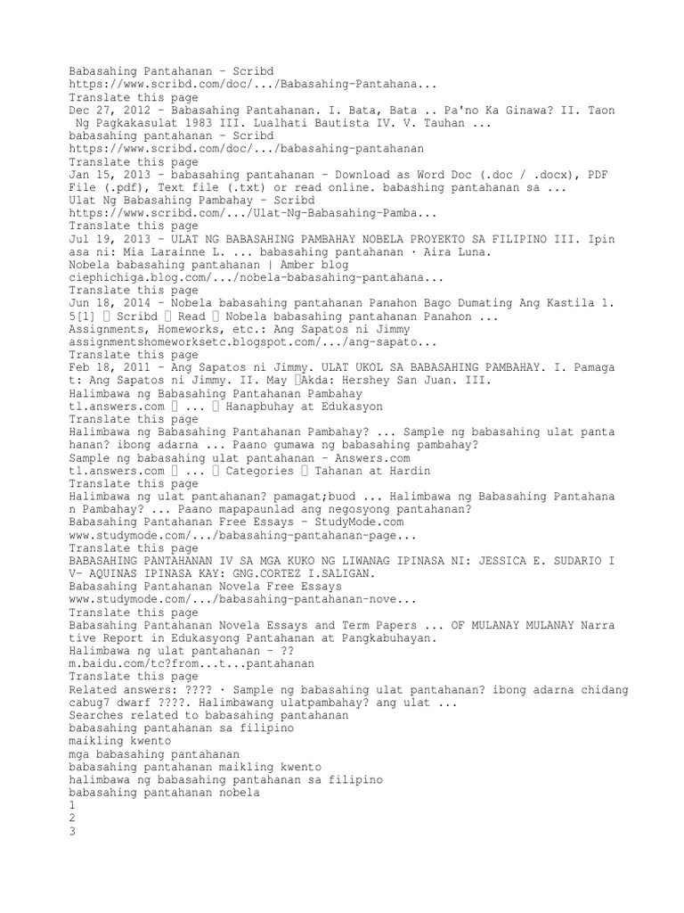 Contextual translation of ulat pambahay tagalog examples into English. Ni Severino Reyes Muling isinalaysay ni Christine S. Biographies of Filipino national heroes and other famous people in Philippine history that are written both in Tagalog and English are also available.